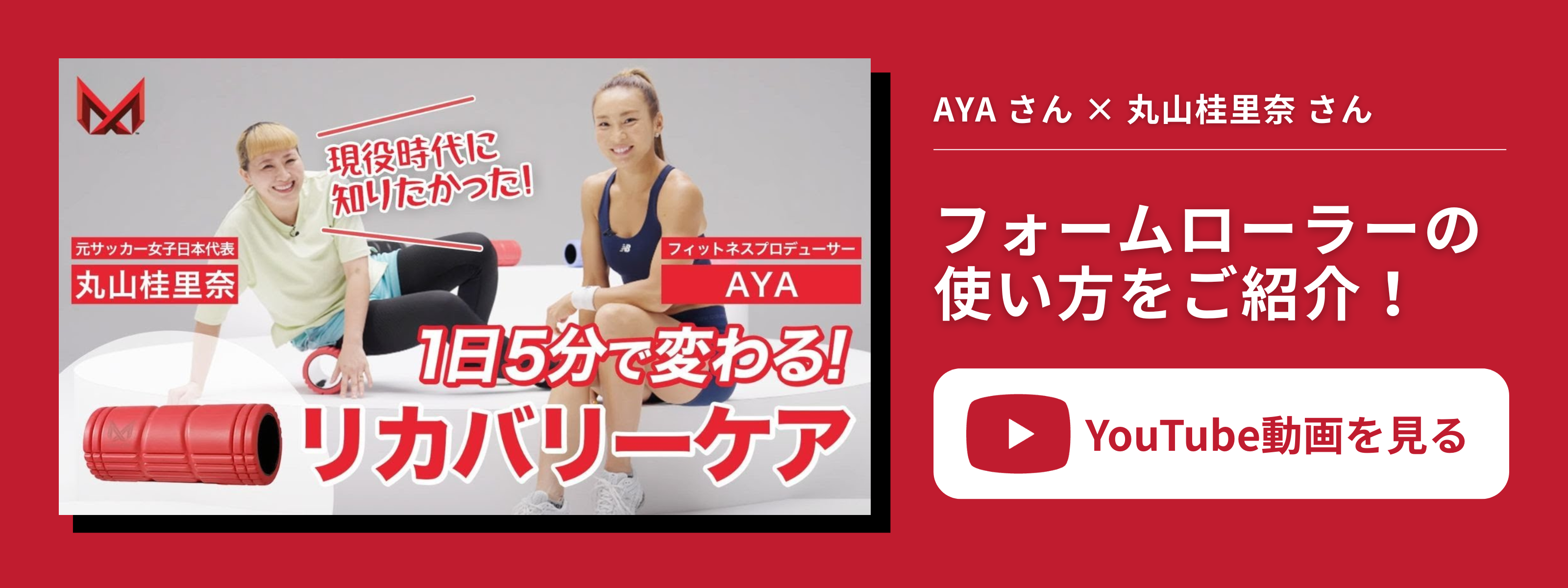 元サッカー日本女子代表の丸山桂里奈さんが、カリスマフィットネスプロデューサーAYAさんからフォームローラーの使い方をガチレッスン!話題の「リカバリーケアローラー」で、誰でも簡単にできる本格的な全身ケアを笑いあり・筋肉痛ありで実演しています。自宅でプロレベルのセルフケアを始めたい方、必見の内容です!